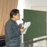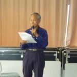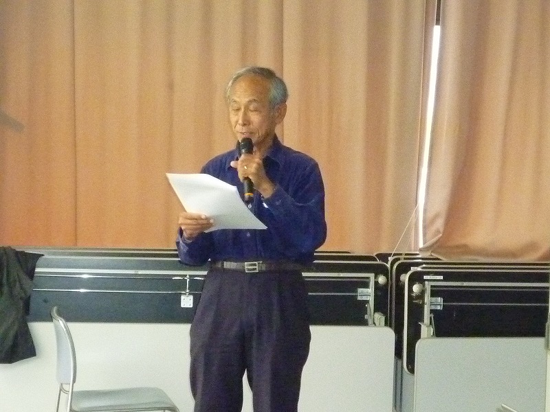 式次第の後半は井上代表より今年度の方針案が報告された。J-net創設から30周年を迎えた節目にJ-netの今後を考える会(2)の提言を受け、今年度は体制を見直し、楽習会と自主グループの活動に絞り運営する内容が説明された。