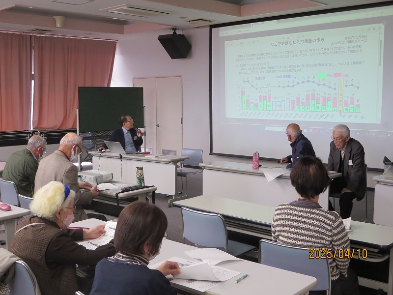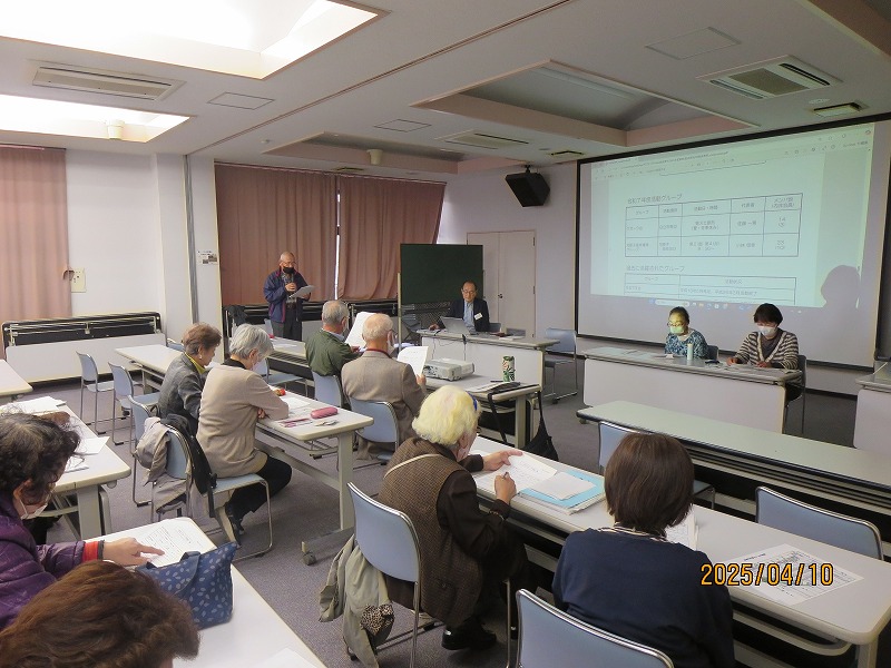J-net総会が4月10日、会員・会友の27人が出席し開催された。最初に井上共同代表の挨拶があり、会員・会友の協力により令和6年度の活動が計画通りに達成できたことに感謝の意が述べられた。総会資料の説明に入り令和6年度各部門の活動実績とトピックスが報告された。続いて担当より昨年度の決算内容と収支の監査結果が報告された。特にJ-netの活動3本柱であるシニア講座は昨年の第23回開催が最後となり、活動終了が竹本共同代表により報告された。総会前半の実績報告後に質疑応答を行い、令和6年度の報告が参加者の賛同を得て承認された。