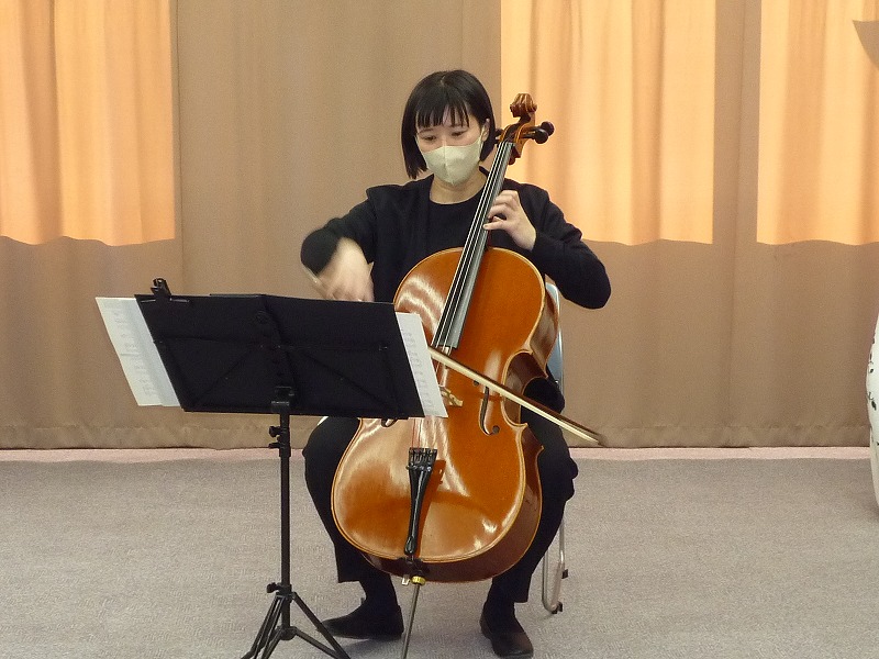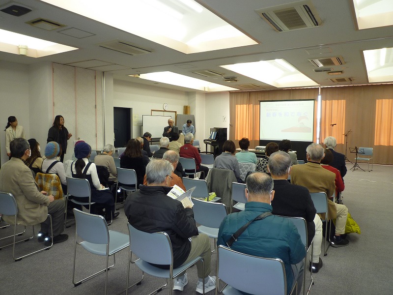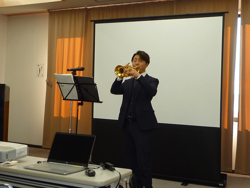音楽会は2部構成で行われ、第1部は記念館職員によるピアノ、チェロ、トランペット兼ボーカルの演奏で始まった。みんなで歌い・楽しむために歌詞集「心に残る あのうた このうた」が準備され、夕焼け小焼、あの町この町などの童謡、吉田正作曲のいつでも夢など10曲ほどを披露いただいた。また曲の合間に歌詞と日立市に因んだクイズも出題され、正解者には記念館グッズをプレゼント、和やかな雰囲気が演出された。またアンコールに応え「誰よりも君を愛す」をみんな唄い楽しんだ。