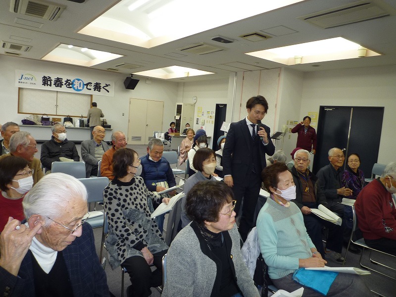 最初に参加者が対面で向き合い井上代表の発声で賀詞を交換、続いて健やかに新年をお迎えられたこと、J-netの持続的な活動に期待する旨、挨拶があった。